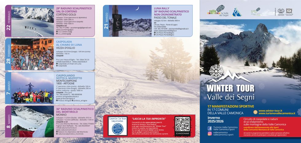 Evento Winter Tour 2025/26 17 manifestazioni sportive in 17 comuni della Valle Camonica – stagione invernale 2025/26. Condividi: Fai clic per condividere su X (Si apre in una nuova finestra) X Fai clic per condividere su Facebook (Si apre in una nuova finestra) Facebook Mi piace Caricamento...